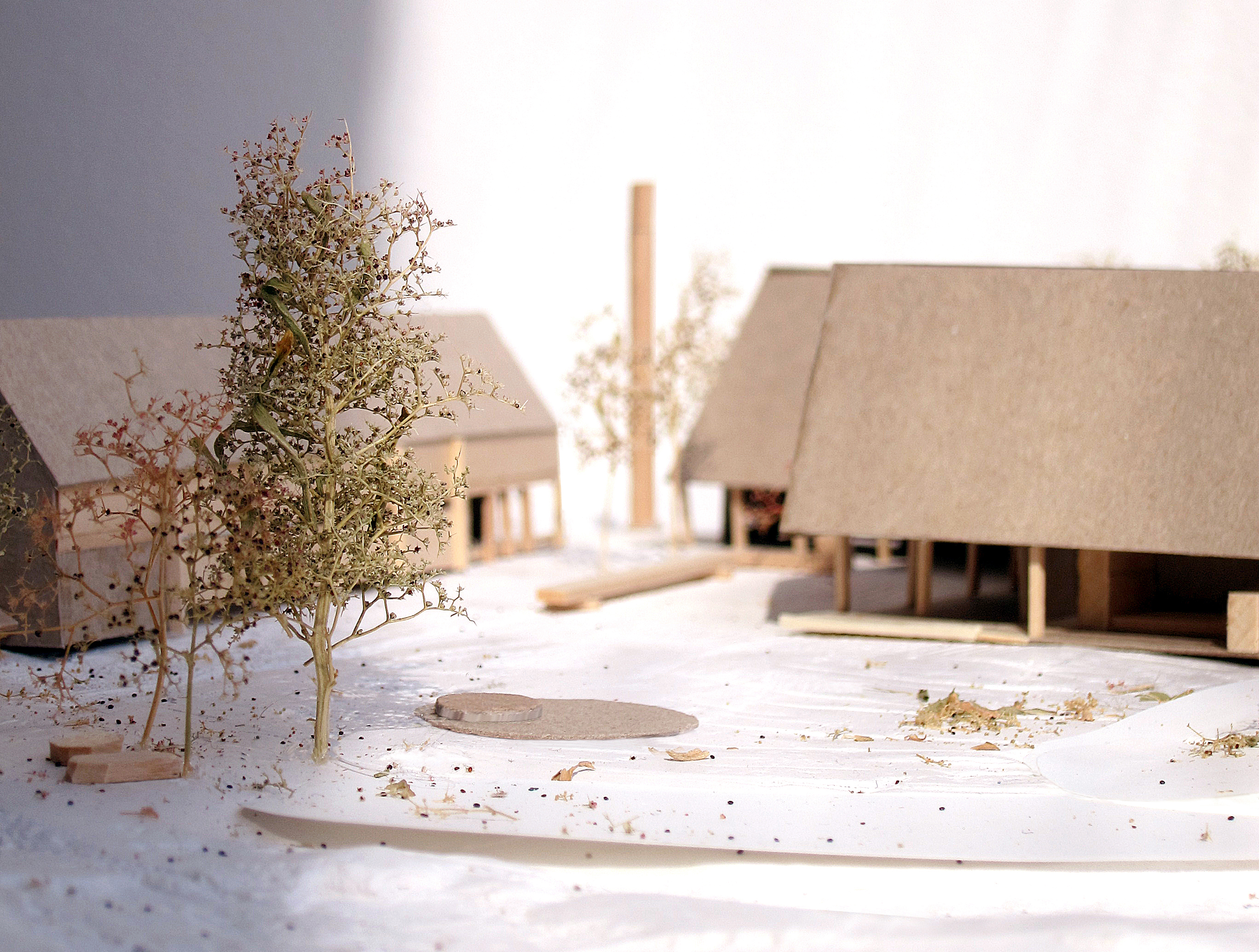 Aiming at setting the conditions for mutually beneficial experiences, the project offers a variety of indoor, outdoor and intermediate spaces, in varying ways influenced by the rough, atmospheric and slow experience of walking. The material palette focuses on earthy and natural textures, comprised of materials with low initial-impact CO2 footprints, seeking to create a sensory, sustainable environment.
